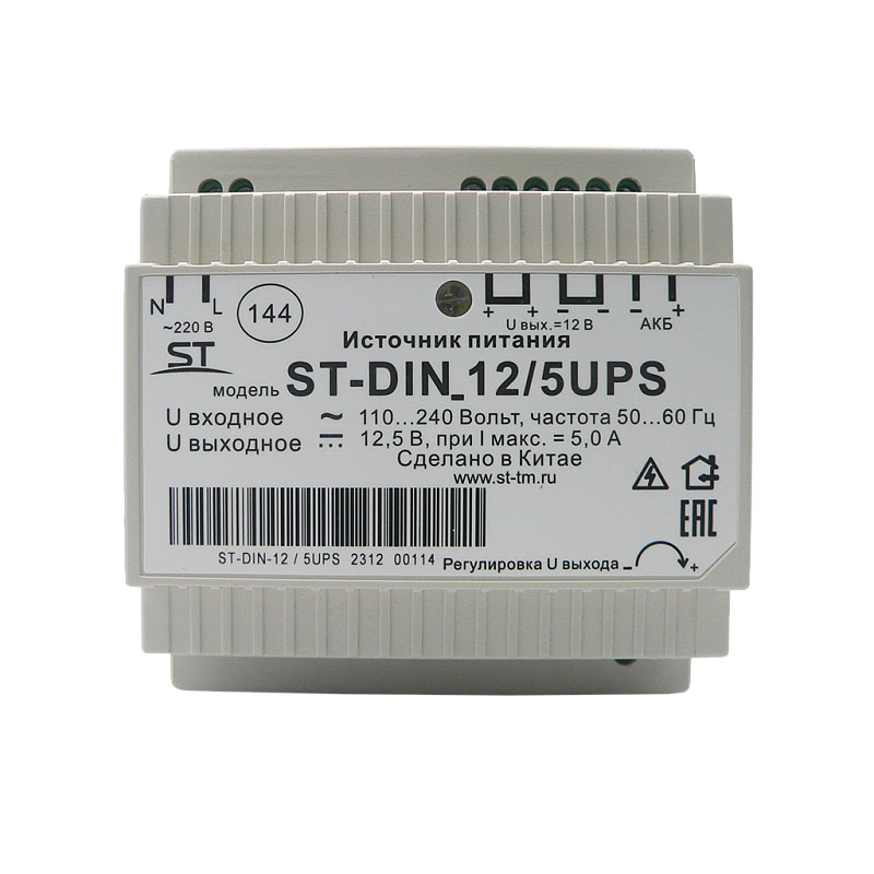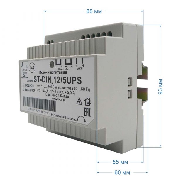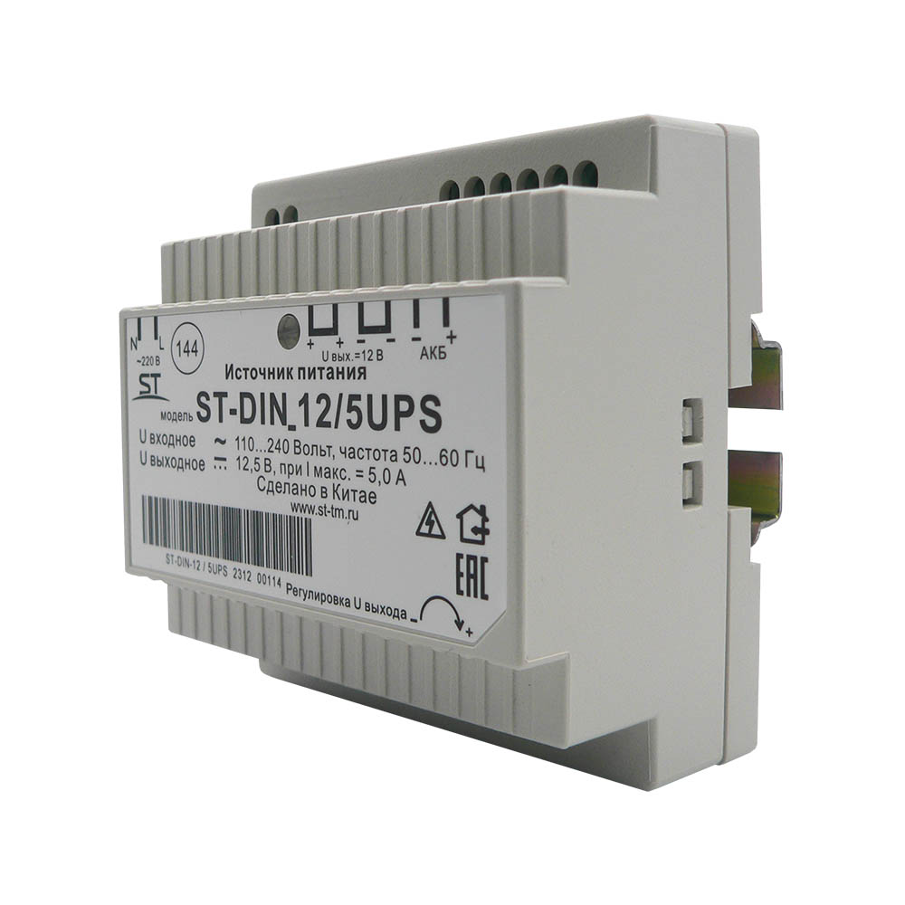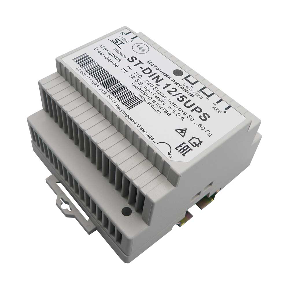 Блок питания ST-DIN 12/5UPS, 5А, max 60Вт, nominal 12.5В, max AKB 0.7А, -10 +45°C