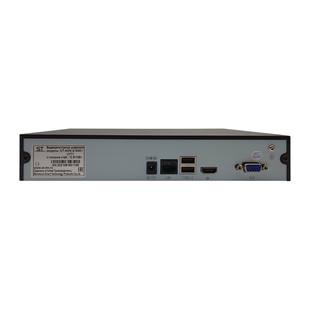 Видеорегистратор ST-NVR-S16051 CITY, Цифровой, режим работы:16 каналов до 5Mp,детектор движения, Всего видеовыходов: 2 (HDMI, VGA), HDMI/VGA:1920x1080p/60Hz,1440x900p/60Hz, 1366×768/60Hz,1280×1024/60Hz, 1280×800/60Hz,1024×768/60Hz, Поддерживаемые видеокодеки: H.264/H.265, Поддерживаемые аудиокодеки: G.711A, Запись IP камеры (разрешение / скорость): До 5Mp (25 к/с (зависит от камеры)), 1 HDD SATA3 (3.5″) 10Тб, Сетевой интерфейс: 1 RJ45 10/100М адаптивный Ethernet интерфейс, P2P: MEeye, Поддержка платформ: Iphone, Android, Напряжение питания/ потребляемая мощность (без HDD): 12 В / <10W, Рабочая температура: 0°C ~ +55°C, Габариты, мм.: 255х210х42 мм