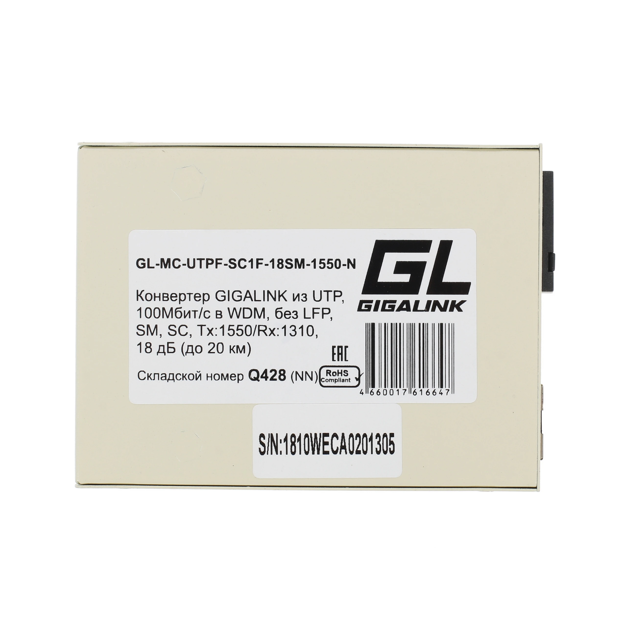Для вашего удобства в конвертере GIGALINK GL-MC-UTPF-SC1F-18SM-1550-N реализована индикация с помощью светодиодов. Установленные в него лампочки позволяют отслеживать режим работы данного устройства.
