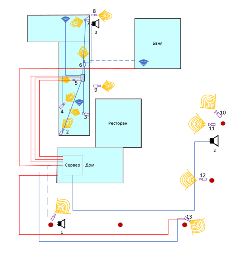 Прилагаем вариант установки системы видеонаблюдения на горнолыжной базе: