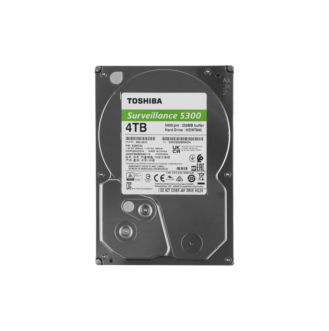 Жесткий диск Toshiba S300 Surveillance [HDWT840UZSVA], 4 ТБ, кэш 256 МБ